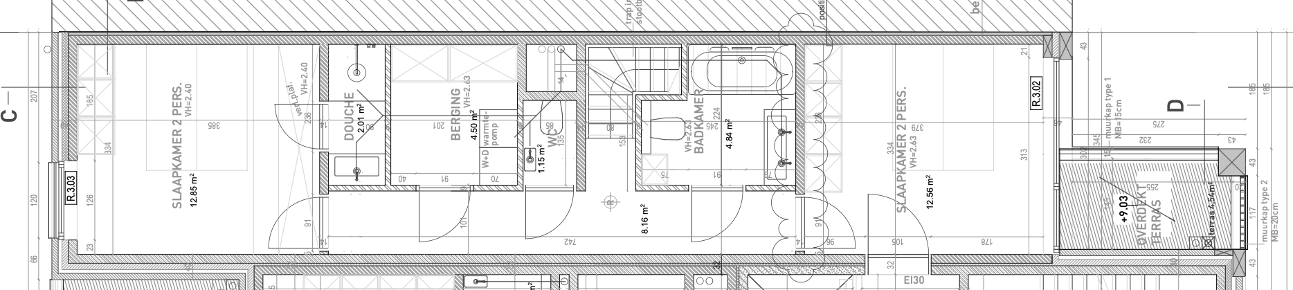 De slaapkamer aan de achterzijde is uitgerust met een eigen wastafel en douchecel. De slaapkamer vooraan heeft toegang tot een leuk terrasje.