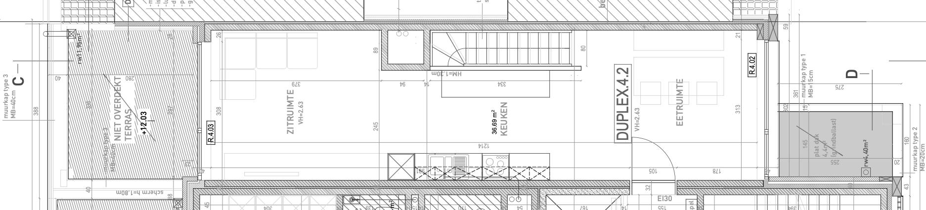 Dit specifieke appartement betreft een duplex-appartement (110 m2) met de leefruimtes op de vierde verdieping en het nachtgedeelte op de derde verdieping.